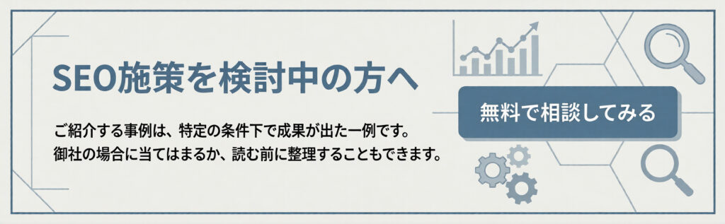 SEOは記事を公開した時点で完了するものではありません。成功事例に共通しているのは、公開後も改善を前提に運用されている点です。検索順位や流入状況を確認しながら、内容を見直し、情報を補足する姿勢が成果につながっています。